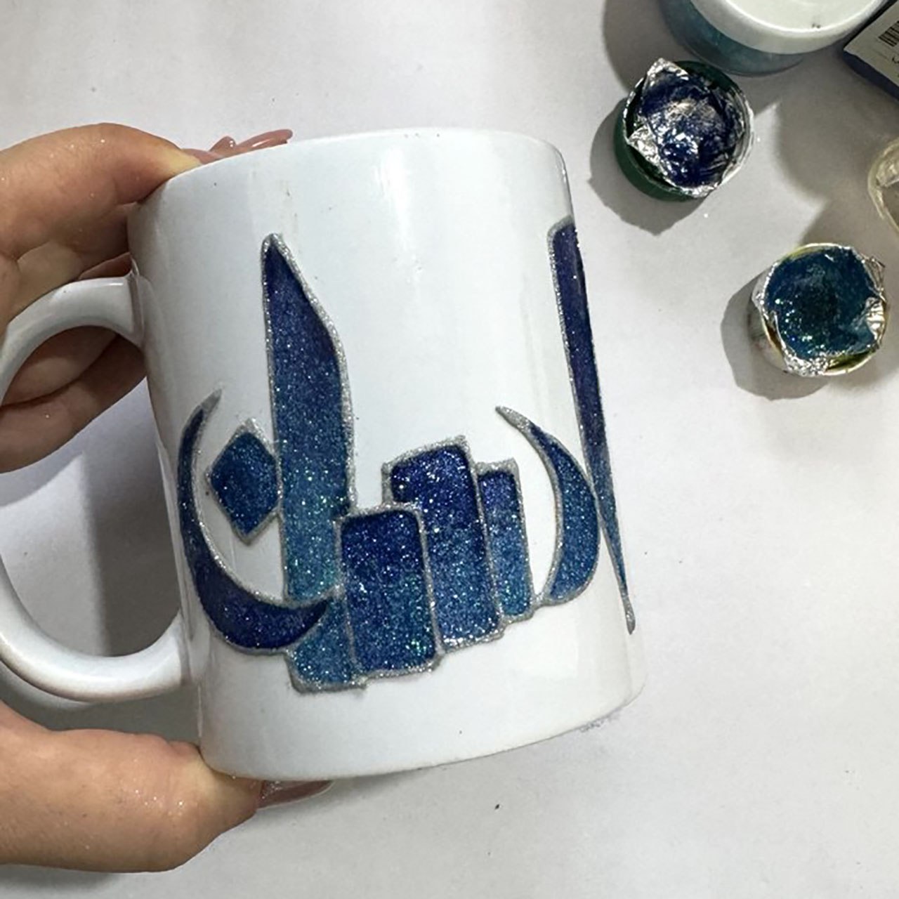 “ماگی ویژه با نام احسان، درخشان شده با رنگهای آبی و دورگیر نقرهای اکلیلی؛ هدیهای شخصیسازیشده که شادی کودکانه را در هر لحظه زنده میکند.”